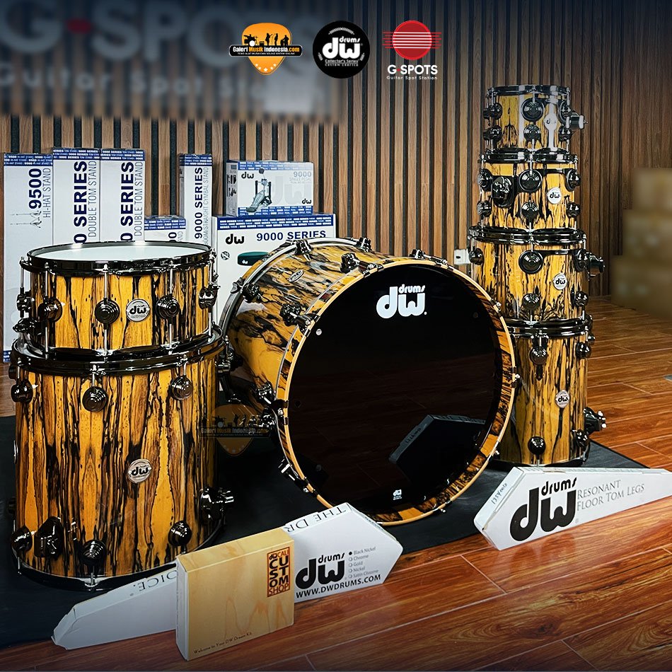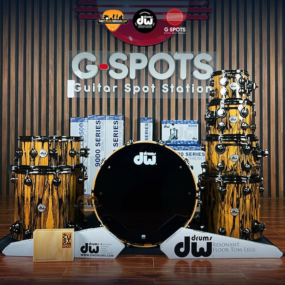 1 DW Collectors Exotic Series Ebony Ivory 22",8",10",12",14",16" Drum Set with Hybrid Shells