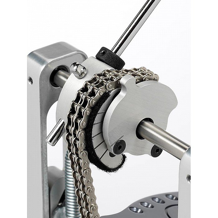 Machined from solid aluminum, the DW MCD Machined Chain Drive bass drum pedal offers you the smooth and precise action of a fully adjustable sprocket-less cam, which lets you quickly shift between popular chain-drive cam settings. Features such as a perforated footboard with contoured heel plate, interlocking Delta hinge, and Tri-Pivot Swivel Toe-Clamp give the MCD the feel of a well-tuned race car. The V.E.R.T. Vertical Sliding Spring Adjustment and customizable control beater, which offer adjustable weight/impact, and more, all serve to make this one of DW's finest bass drum pedals.