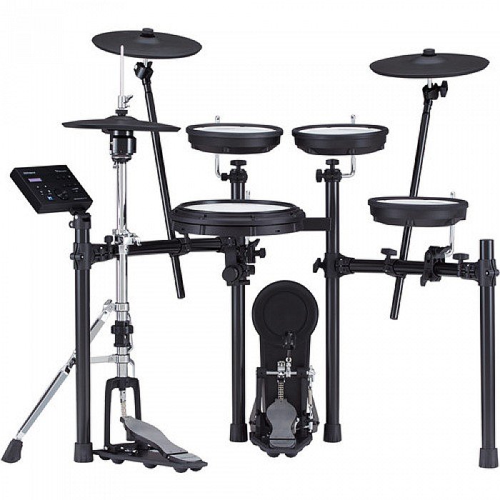 Back in 1997, Roland transformed the digital drum market with the debut of the world’s first mesh drumheads. This unique dual-layer mesh design gives stick resistance and rebound worthy of a great acoustic drumhead, and the authenticity even extends to finer details like adjustable tension using a standard drum key. You’ll only get that lifelike feel and sensing speed with a Roland mesh head. And it’s not only the mesh heads that revolutionize the playing experience—the VH-10 hi-hat, CY-12C crash, and CY-13R ride shimmer and swing like your favorite acoustic cymbals too.