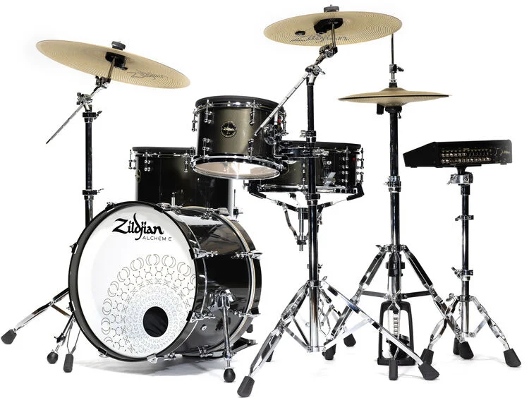 This 4-piece ALCHEM-E Gold is a full-dimensioned rendition that’s perfect for enjoying the limitless creative possibilities of electronic drums with the larger stage presence of an acoustic kit. With its revolutionary E-VAULT sound module leading the charge, the ALCHEM-E Gold provides a diverse palate of remarkably detailed drum, cymbal, and world percussion samples, boasting a 5-inch touchscreen and a library of nearly every one of Zildjian’s cymbal offerings throughout history — including those yet to come! Zildjian also sets you up with a pair of cymbal stands, tom mounting hardware, and a suite of other essentials to get you up and running with speed. Whether you’re jamming, rehearsing, tracking, or performing, the Zildjian ALCHEM-E Gold from Sweetwater is primed to prevail.
