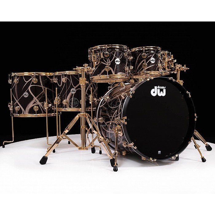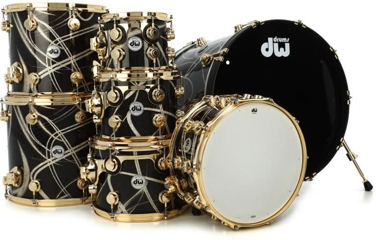 The Smoke Glass Contrails finish and gold hardware on this 7-piece DW Collector’s Series SSC Maple Shell Pack look so good that you almost won’t want to play it! Fortunately, in typical DW fashion, it sounds just as good. The SSC Maple shells have been selected and crafted by DW’s master artisans to ensure that each shell reaches its full tonal potential and that the drums play together as a cohesive musical instrument. The 18- x 22-inch kick drum and the 7- x 14-inch snare are slightly deeper than standard, resulting in a deep and solid backbeat. However, the toms and floor toms are slightly shallower than standard toms, so they’ll sing loud and clear. Played together, this kit has a tonal range and elegant appearance that Sweetwater drummers have likened to playing an exquisite grand piano in drum set form.