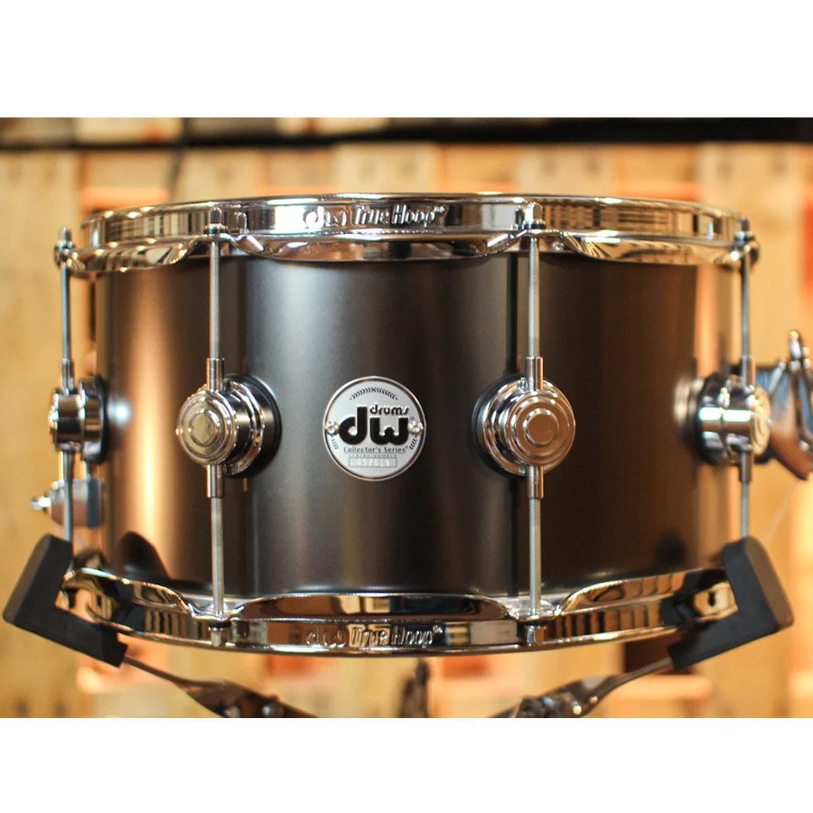 The DW Collector's Series Satin Black over Brass snare drum sports a thin, industry-standard 1mm rolled brass shell and is plated with a stealthy-looking satin black finish. This workhorse snare drum hand delivers you the classic "studio brass snare sound," providing you with the brightness and definitive cut you need for a variety of musical genres, including rock, jazz, and fusion. If you've been searching for a stellar-sounding, versatile snare that's ideal for recording (and can hold its own onstage), power your backbeat with the DW Collector's Series Satin Black Over Brass snare drum. Utilizing a thin industry-standard 1mm shell, and plated with sleek black nickel, the Collector's Series Black Nickel over Brass is a versatile workhorse snare. Suitable for a variety of musical applications, it offers that sought-after "classic studio brass snare sound" for Rock, Jazz, and beyond; offering brightness and cut with a decidedly metallic tonal characteristic. Customize it with any available DW Custom Shop drum hardware color.