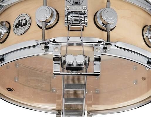 Its shell is crafted from a solid 10-ply sandwich of choice Maple reinforced by a 6-ply Maple hoop that adds even more stability to the drum, resulting in increased tuning consistency. The shell also features 60-degree bearing edges for optimal head to shell contact which enhances levels of resonance and attack. A lacquered shell interior adds a sheen of tonal brightness to an otherwise full-bodied sound, and the addition of DW’s MAG Snare throw-off and 3-point butt positioning allows you to dial in your snare wires with an extreme degree of accuracy.