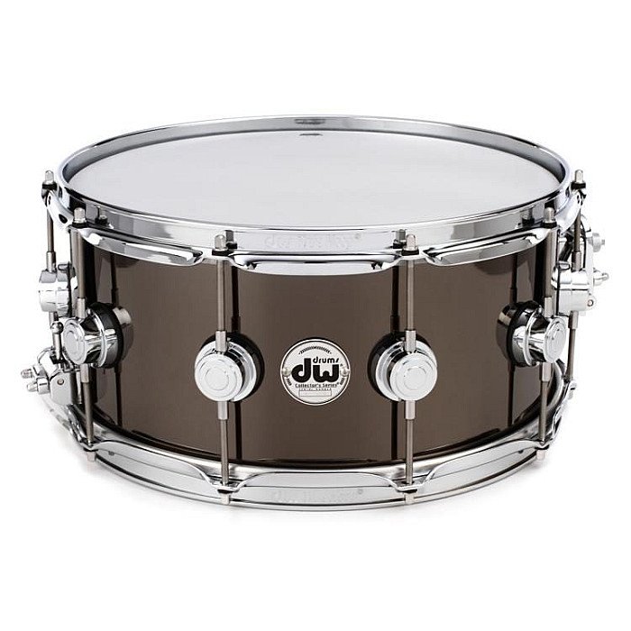 Utilizing a thin industry-standard 1mm shell, and plated with sleek black nickel, the Collector's Series Black Nickel over Brass is a versatile workhorse snare. Suitable for a variety of musical applications, it offers that sought-after "classic studio brass snare sound" for Rock, Jazz, and beyond; offering brightness and cut with a decidedly metallic tonal characteristic. Customize it with any available DW Custom Shop drum hardware color. The 14x6.5 DW Collector's Series Black Nickel Over Brass Snare Drum (DRVB6514SVC) has a thin industry-standard 1mm shell, and plated with sleek black nickel. The Collector's Series Black Nickel over Brass is a versatile workhorse snare. Suitable for a variety of musical applications, it offers that sought-after classic studio brass snare sound for Rock, Jazz, and beyond; offering brightness and cut with a decidedly metallic tonal characteristic.
