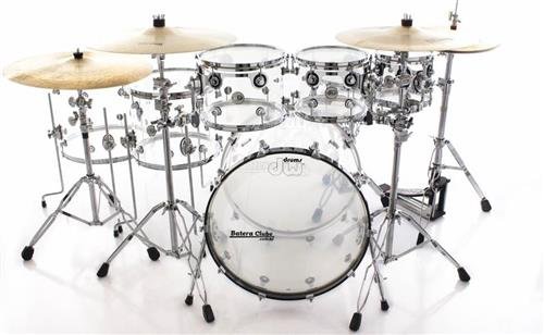 The first-ever DW acrylic set features high-grade seamless shells and a host of drummer-friendly features that are included with the Design Series(tm) line. The 5.5mm thick, clear shells are outfitted with mini-turret lugs, steel flanged counter hoops, STM (Suspension Tom Mounts), and Remo heads. The bass drum acrylic shells are 6.5mm thick. The snare drum comes standard with a MAG throw-off and DW True-Tone snare wires. Expect big value from this DW Design Series Clear Acrylic five-piece drum kit! This five-piece shell pack gets you well on your way towards crafting your ideal drum kit for stage or studio. You get three toms, a snare, and a kick drum, all made from clear acrylic that's sure to turn some heads. The Design Series Drum Set packs a punchy sound that's perfect for a wide variety of drumming styles.