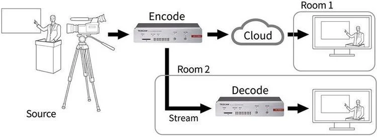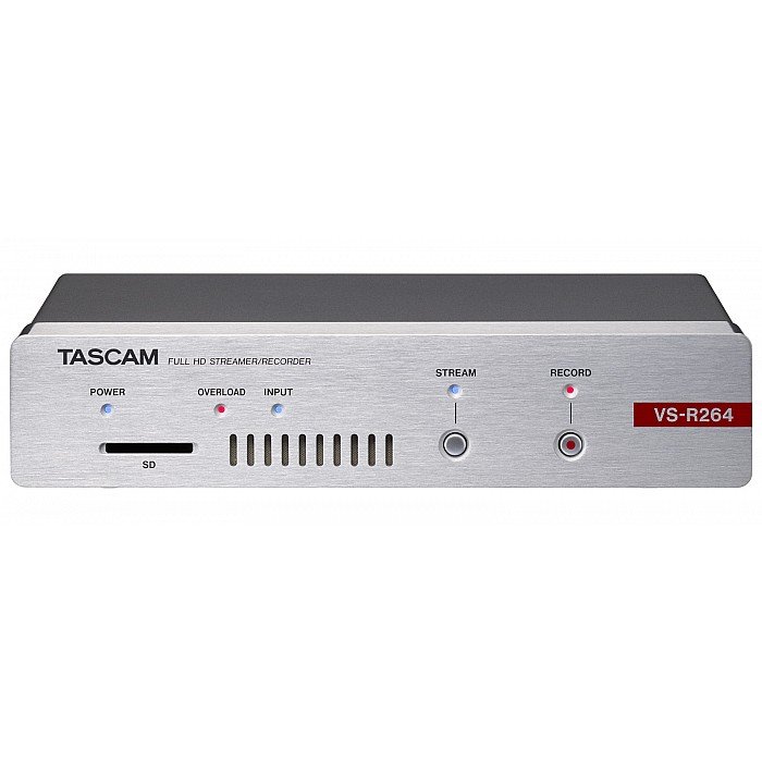 The TASCAM VS-R264 is an AV-over-IP streaming encoder and decoder that offers full-HD streaming using H.264 Long GOP encoding. It operates as a standalone YouTube encoder in live streaming environments, and provides full-HD streaming to Wowza, Ustream, AWS Elemental MediaLive, CloudFront, and other content delivery networks. The VS-R264 is jam-packed with a versatile complement of balanced and unbalanced I/O, while installed output level configuration and reference level switching functions ensure flexible system structuring.