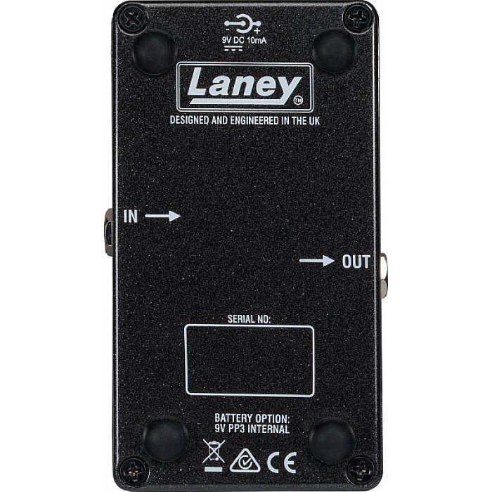 The guitarists here at here are love how easy it is to conjure up the perfect distortion tones with the Laney Monolith's straightforward 4-knob control set. The Distortion knob dials in the amount of gain and sustain, from subtle grit to massively distorted. The Range knob adjusts the amount of low-end content before distortion for a tighter sound — a must-have for muddy-sounding pickups. The Volume knob controls your output level; the Tone knob shapes the character of your distortion. You also get a 3-position Mode switch that toggles between D1 (a heavily compressed distortion), D2 (a softer, more expressive distortion), and Overdrive (subtle grit that's great for boosting the front end of your amp).