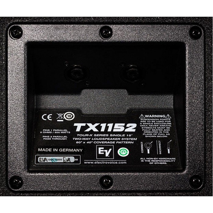 The Electro-Voice TX1152 Tour X is a high power, high sensitivity, 15" 2-way PA loudspeaker system to use when high-quality sound reinforcement is required in a lightweight package.