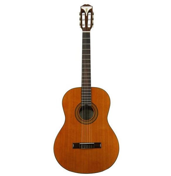 The easy to play Epiphone PRO-1 Classic nylon-string acoustic guitar was designed to help beginning players have a comfortable instrument to play. Made using select cedar and mahogany tonewoods, the PRO-1 Classic's classical-sized body delivers great acoustic tones. The slimmer neck, jumbo frets, light-gauge strings, and shorter nut width help this guitar play easier than most other guitars in its price range. Don't let your instrument be a deterrent to your goal of learning to play guitar. Get the Epiphone PRO-1 Classic nylon-string acoustic guitar today!