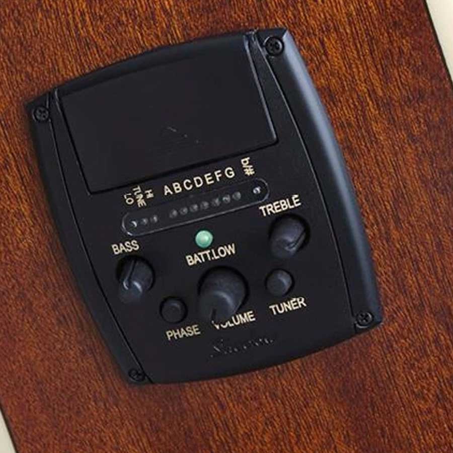 With the Epiphone J-45 EC Studio, you're always ready for the spotlight. Fitted with Shadow's Performer Tuner preamp system, the J-45 EC Studio gives you get easy plug 'n' play access to great amplified acoustic guitar tone. The system gives you control over master volume, as well as treble and bass EQ, a tuner/mute button, and a built-in chromatic tuner. And powered by two 2032 lithium batteries, the Shadow Performer is much lighter weight and easier to maintain than older systems that use 9V batteries.