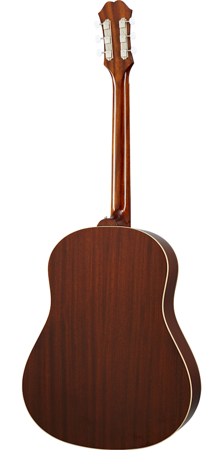 Solid wood is used throughout this "1964" Texan, giving you big, balanced sound with a superb resonance. Guitars in this price range often don't feature solid wood backs and sides, but with this guitar, Epiphone has taken a different approach: they built this "1964" Texan with a solid mahogany body, solid spruce top, and glued-in mahogany neck. The result? A high-value instrument with robust lows, balanced mids, and bell-like, shimmering highs. We've all heard the expression, "they don't build 'em like they used to." Well, Epiphone does!