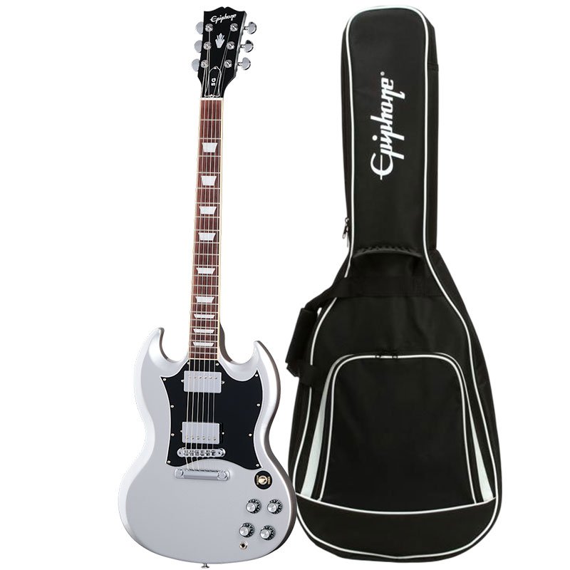 The Epiphone SG Standard Silver Mist adds a modern twist to the classic SG design with its shimmering silver finish that exudes elegance and style. Built with a lightweight mahogany body and a SlimTaper neck profile, it offers both comfort and effortless playability. Equipped with Epiphone Alnico Classic humbuckers, this guitar delivers a versatile tonal range, from warm, smooth melodies to aggressive, high-energy riffs. Its blend of striking aesthetics and reliable performance makes it an ideal choice for musicians seeking an iconic instrument.