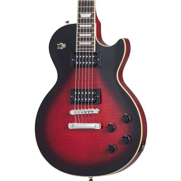 The Epi Slash Les Paul Standard conjures the vibe of the influential Gibson guitars Slash has used during his career. It includes a mahogany body, a AAA flame maple veneer top, and a super-comfortable Slash Custom "C"-shaped neck. The electronics consist of Epiphone Custom ProBucker pickups along with CTS potentiometers with Orange Drop capacitors. You also get color-coordinated hardware components, Slash’s "Scully" signature drawing on the back of the headstock, and a truss rod cover with a facsimile of Slash's signature.