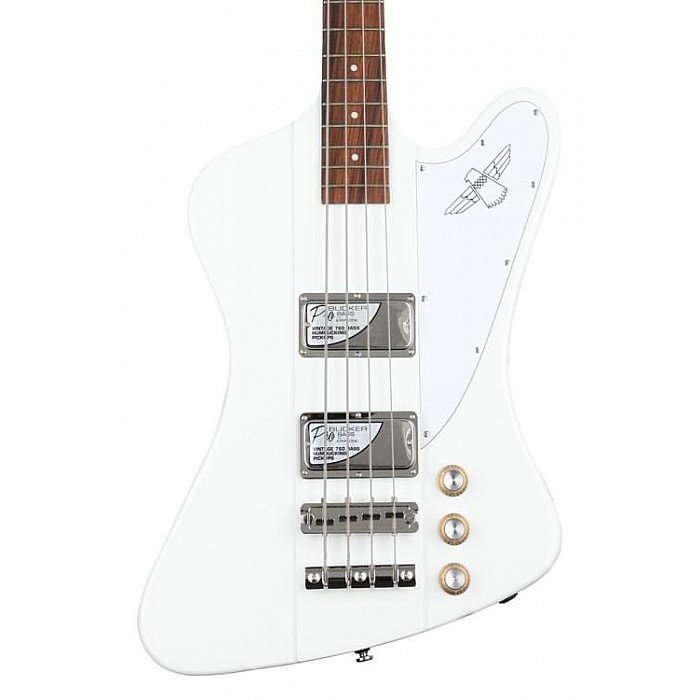 Building upon the long-term success of the Thunderbird bass, Epiphone offers the Thunderbird Vintage PRO Bass as a faithful replica of early-'60s Thunderbirds. This is THE original "rock and roll" bass, with the distinctive shape and traditional design elements — all for a price that the working bassist can afford. The Thunderbird Pro's feature a rock-solid, nine-piece neck with through-body construction.