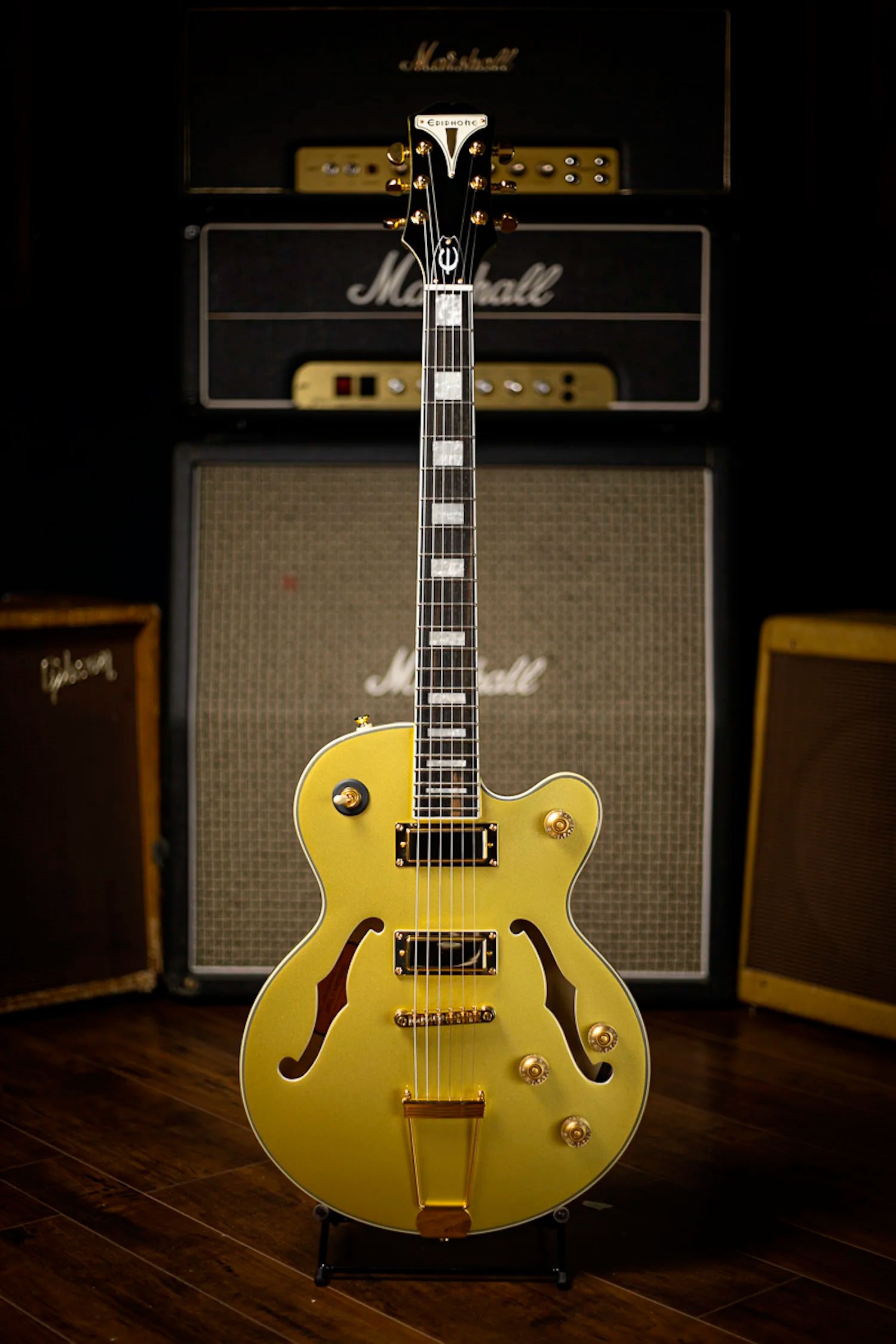 Classic Epiphone headstock plate catches the eyes of your audience