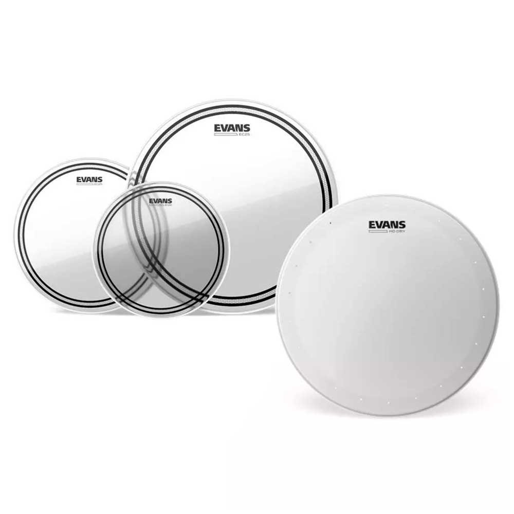 With EVANS EC2S Tom Pack, you can revamp your kit with three of our finest clear tom heads. With built-in Sound Shaping Technology (SST), the EC2S tom packs deliver an extremely well balanced, pre-EQ'd sound. Combined with our revolutionary Level 360 Technology, the heads? two-ply 7mil construction provides optimized attack, tone, and sustain. Contains EC2S Clear tom heads in standard sizes (12", 13", 16") with 14" HD Dry Snare Batter.