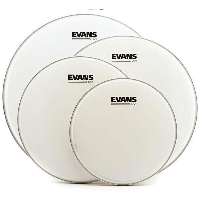 The UV1 series is designed for the widest range of sonic possibilities while remaining the most durable single-ply drumhead available. A patented UV-cured coating and breakthrough 10-mil film give the Evans UV1 drumhead the kind of durability that drummers dream of. If you're tired of your coating wearing thin long before your head wears out, Sweetwater drummers recommend the Evans UV1. Like other leading coated heads, the UV1 is made from a single ply of 10-mil film for a good balance of sensitivity and tone. But it's made tough to resist wear from rimshots, buzzes, and swirls. The Evans UV1 also boasts Evans' Level 360 collar, which seats the head evenly along the bearing edge for better tone and tuning. This package deal gives you the Evans UV1 tom drumhead in 10", 12", and 16" sizes — plus a free 14" snare head.