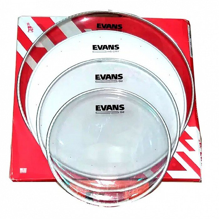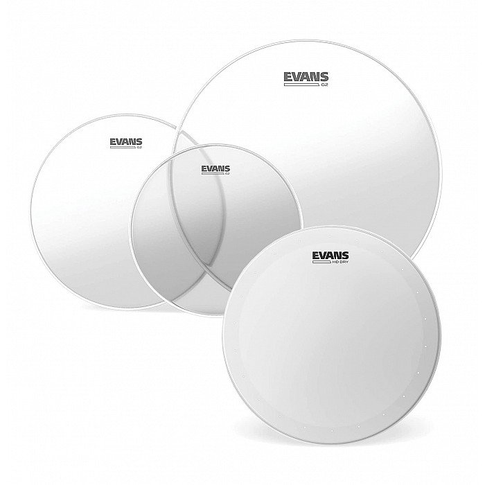 Evans G2 Clear Rock Pack (10″, 12″, 16″) with 14″ HD Dry Snare Batter.