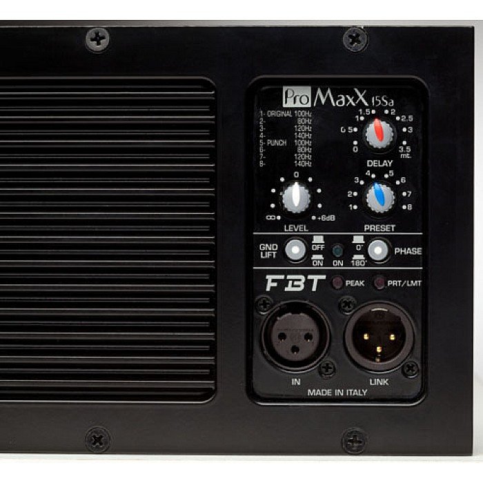 The ProMaxX 15SA from FBT is a 1200W RMS active subwoofer with a 15" woofer in a bass-reflex design. It can be used to extend the low frequency response to a wide range of FBT speaker systems for applications such as live stage, theater, houses of worship, DJ setups, clubs, and more.