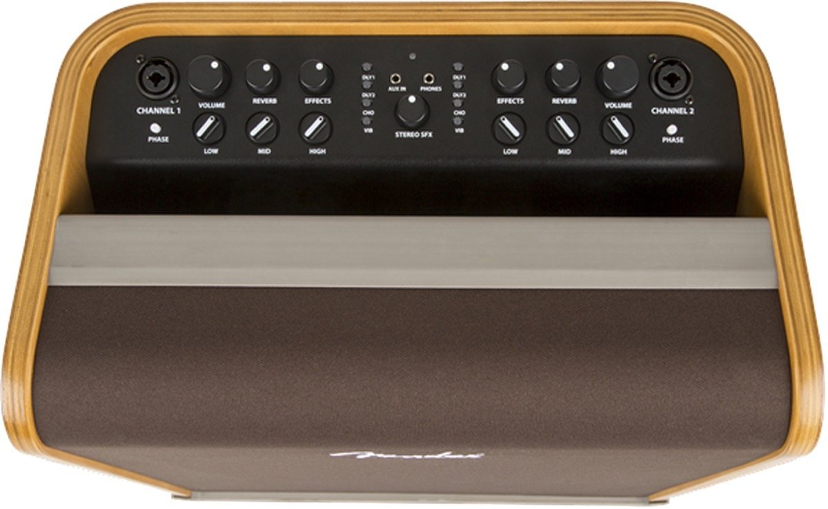 The Fender Acoustic SFX amplifier gives acoustic players full, natural tone and stunning Stereo Field Expansion technology (SFX), which goes beyond stereo for room-filling tonal imagery that envelops the listener in a rich acoustic experience. Its gracefully curved, acoustically designed wood shell complements an acoustic guitar' form and speaks to the aesthetic sensibilities of the acoustic musician.
