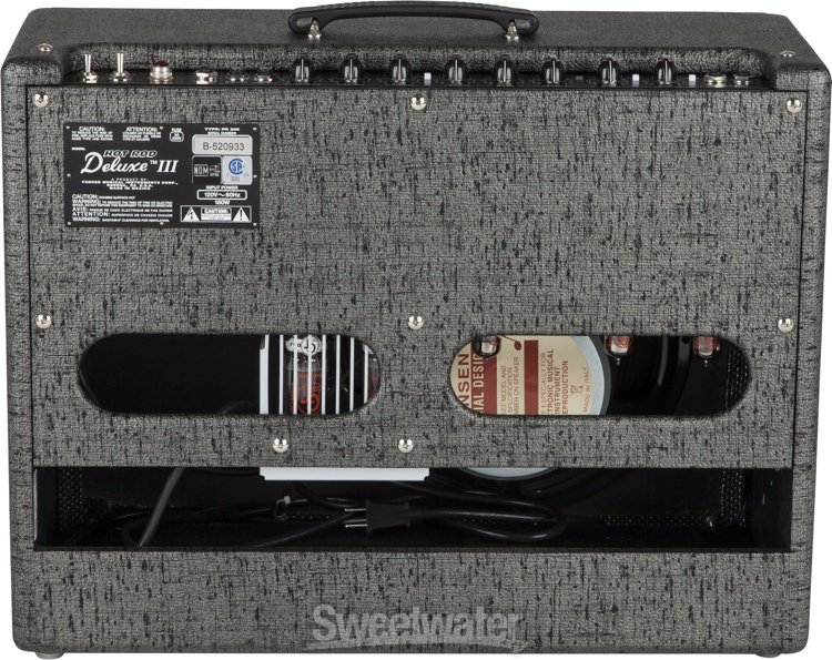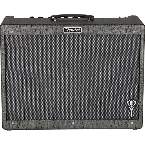 The Fender George Benson Hot Rod Deluxe combo amp is fine-tuned for world-famous jazz guitar virtuoso and pop artist George Benson. It has the full bottom end characteristic of 6L6 tubes and a versatile all-tube preamp including a 12AT7 up front for cleaner tone; especially with humbucking pickups. A 100W Jensen C12K speaker handles the immediacy of Benson's singing soloing style with clarity and range, and the solid-pine cab increases tonal resonance while reducing weight. Standard features include clean and "Drive/More Drive" channels, resounding Fender spring reverb, effects loop and more. Personalized exterior touches specified by Benson himself include gray-black vinyl covering, silver-strand grille cloth and "GB" logo badge. Road-worthy deluxe padded cover and two-button footswitch included. Separate matching 1x12" extension enclosure adds output, fullness and stage coverage.