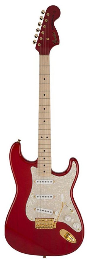 This Made-in-Japan Mami (lead guitarist of Japanese rock band SCANDAL) signature electric guitar model features a maple fretboard, a pearl pickguard, matching headstock and Custom Shop Texas Special pickups.