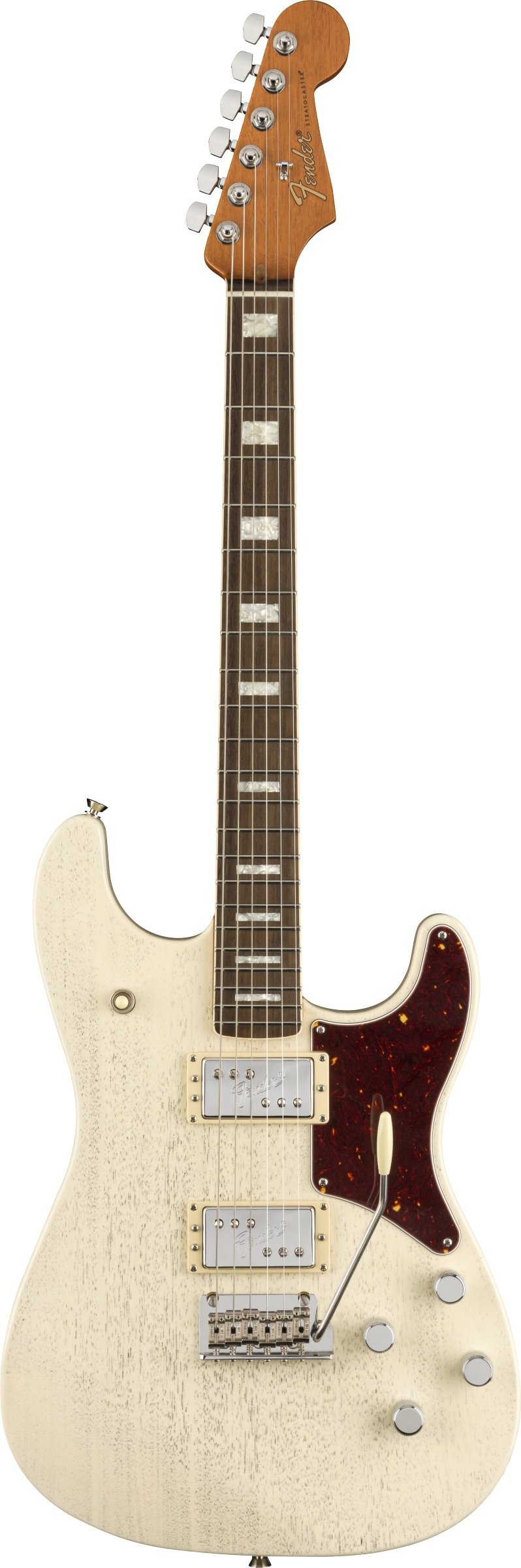 The Uptown Strat was designed to provide LP-style tone and good looks with the signature Stratocaster feel and simplicity. For a warm and resonant tone, a mahogany slab body is mated to a one-piece mahogany neck with a traditional ’60s "C" neck profile. Meanwhile, the 2-point tremolo bridge enables playing possibilities such as subtle vibrato or massive dive bombs. Unlike most of its Fender-designed siblings, the Uptown Strat has a shortened 24.75" scale length that makes the strings feel a little softer and more slinky than usual. Finally, to add a bit of bling to normally simplistic Strat design, the Uptown Strat includes binding and block inlays on the fingerboard and a specially-designed tortoise pickguard.