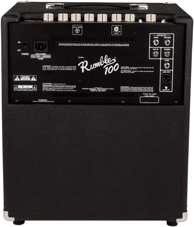 The Rumble 100 bass combo might not be as big and meaty as larger versions in the series, but this bass combo is ready, willing and able to stand up to any challenge. Offering incredible tone and clarity for its surprisingly light weight and size, this amp provides 100 Watts of rich and balanced bass sound delivered through a 12" Eminence Special Design speaker. Four band EQ along with a newly developed foot-switchable overdrive circuit and versatile three-button voicing palette deliver powerful tones ideal for any gig. A 1/8" stereo aux in for jamming along with an mp3/CD player as well as a balanced XLR direct out and 1/4" effects loop send/return jacks make this an amp for all occasions. With classic Fender styling in the form of a black textured vinyl covering, and a silver front grille, the Rumble 100 delivers legendary Fender looks and tone.