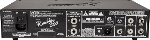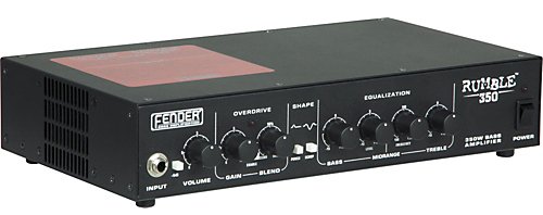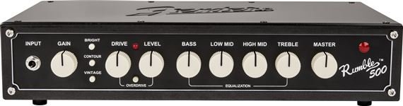 The 500W Fender RUMBLE bass amp head delivers huge, booming low end without losing clarity. It houses useful features and easy-to-use controls, including 500/350W power levels, aux. input, headphone output, Vintage tone switch, Contour on/off, Bright on/off and an FX loop.