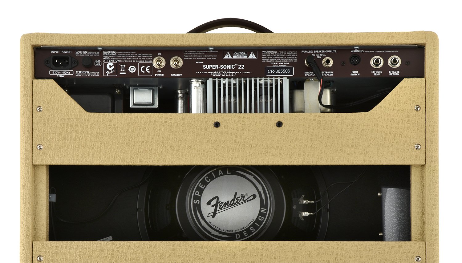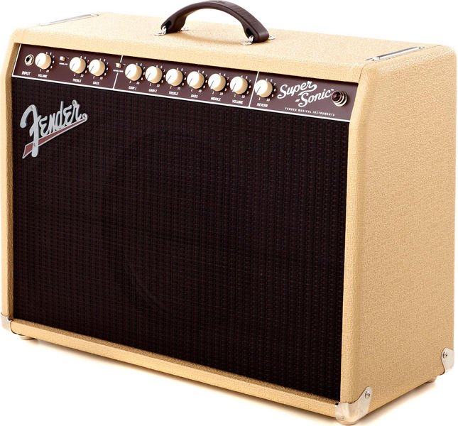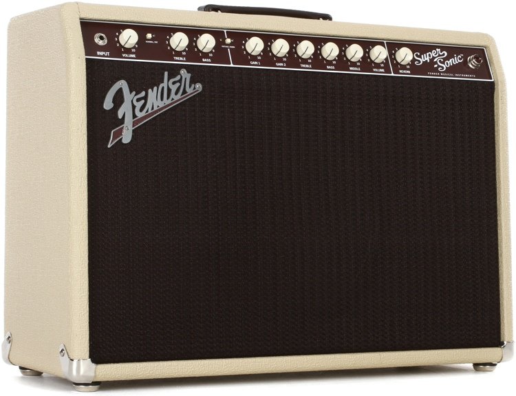 The Fender Super-Sonic 22 guitar amp delivers this versatility with the organic feel and moderate output power of the legendary Deluxe Reverb amp, perfect for most stage and studio applications. The Vintage channel delivers pure, unmistakable Fender tone, and the awesome Burn channel ignites musical inspiration with overdrive flavors ranging from bluesy to flame-throwing. And while the Super-Sonic 22 is capable of heavily saturated tube distortion and sustain, it never masks the tonal character of your guitar. Offered in classic Black/Silver or iconic 1961 Blonde/Oxblood cosmetic treatment; both versions include ivory "radio" knobs and flowing 1960s script logo.
