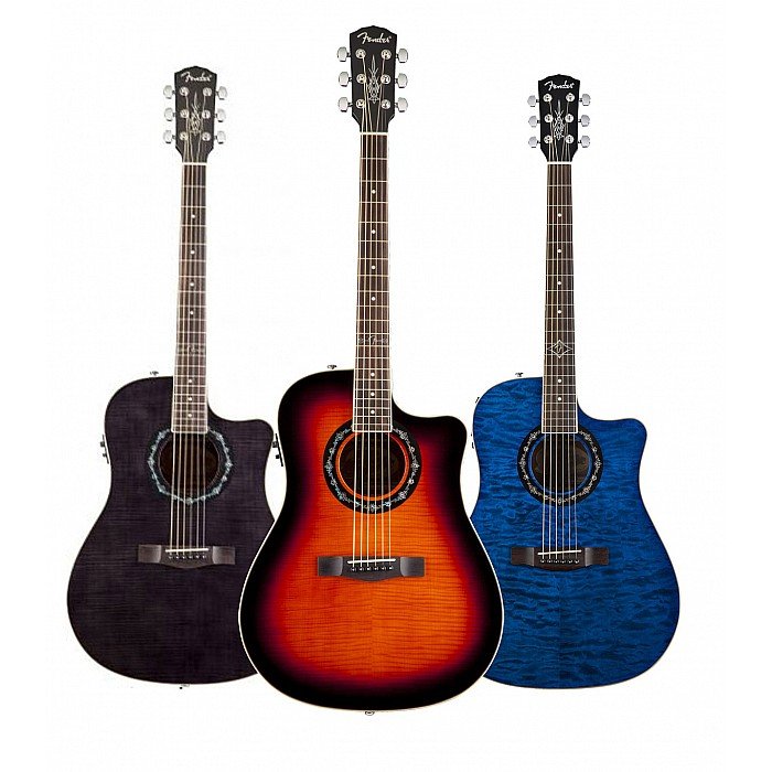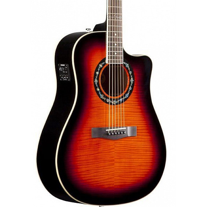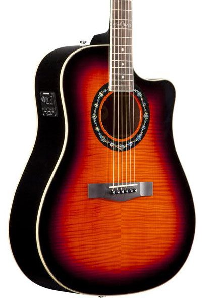 The other great T-Bucket™ 300CE features you already know are still here, too. These include flame and quilt maple tops in several finishes with quartersawn scalloped “X” bracing, mahogany back and sides, body binding and headstock pinstriping, mahogany neck, rosewood fingerboard and bridge, strap-pin and end-pin jacks, and Fishman® Isys III pickup/active preamp system with built-in chromatic tuner, on/off switch, three-band EQ and volume control.