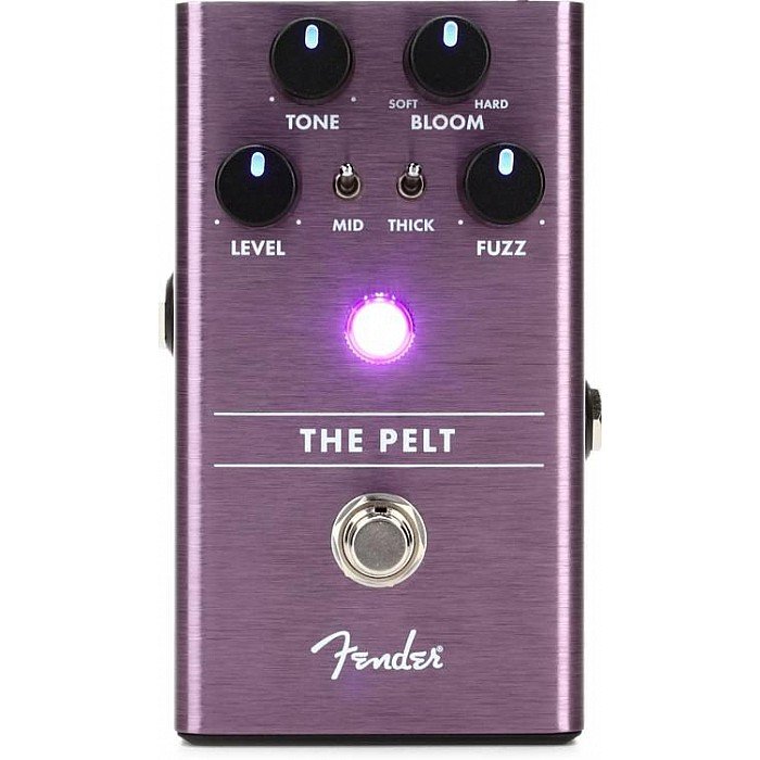 An Adaptable Take on a Classic Fuzz Fuzz is tasty — every guitarist on the planet loves splatty, glitchy fuzz. It's been a cornerstone of rock tone since the early days. If you want to add this indispensable sound to your pedalboard, the Fender Pelt Fuzz is a blue-ribbon choice. This silicon fuzz pedal has all the usual controls, such as Level, Fuzz, and Tone; but its Bloom control is what really sets it apart, allowing you to mold the contours of your sound. Beyond that, a Mid switch boosts or cuts your midrange for even more tonal textures, while a Thick switch injects your sound with a bit of girth and muscle.