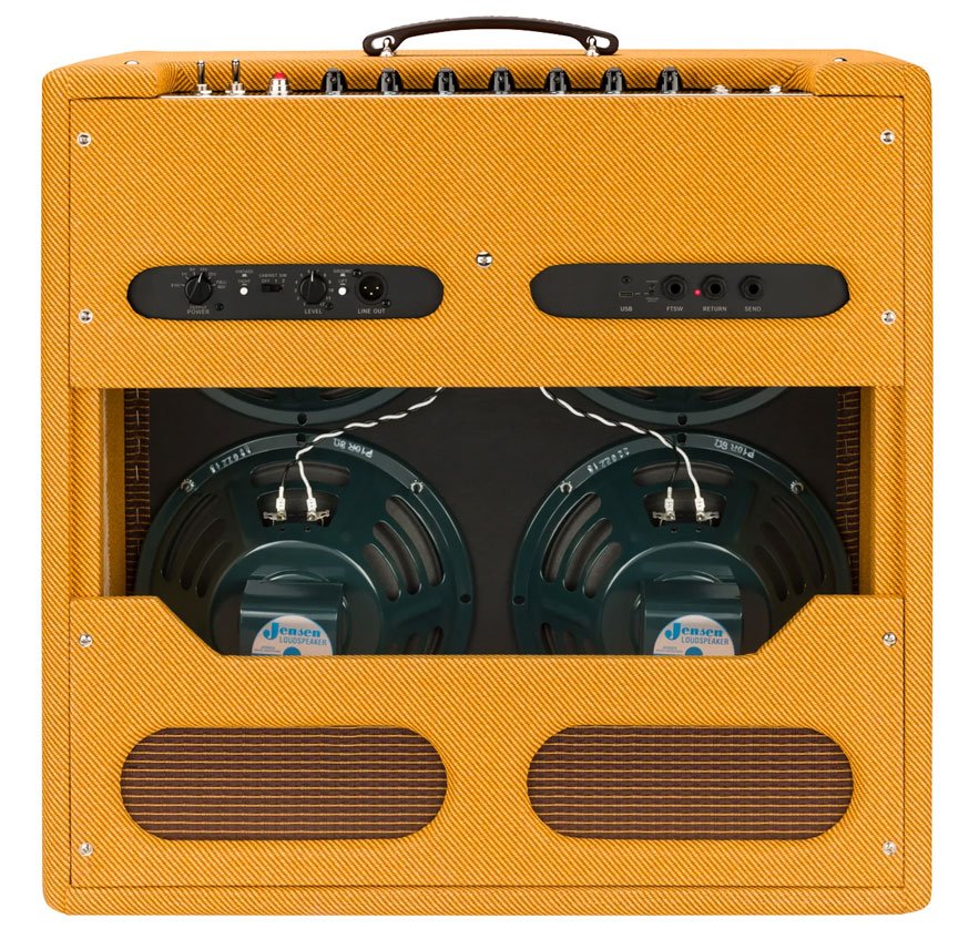 The Tone Master ’59 Bassman amplifier uses massive digital processing power to achieve a single remarkable feat: faithfully modelling the circuitry and 45-watt power output of an original Bassman tube amp. Using a high-performance class D power amp to achieve the headroom and dynamics of the tube amp, the result is a pure Bassman tone that’s virtually indistinguishable from the original. This remarkable Fender technology is paired with the sparkle and touch sensitivity of four Jensen® P-10R speakers, as well as player-centric additions like convolution spring reverb, a vintage/tight switch for smoother bass response and a post amp model effects loop. Other features include an output power selector for full power and five attenuated settings, impulse response (IR) XLR line output for detailed cabinet simulations, a mute switch, and a lightweight pine cabinet.