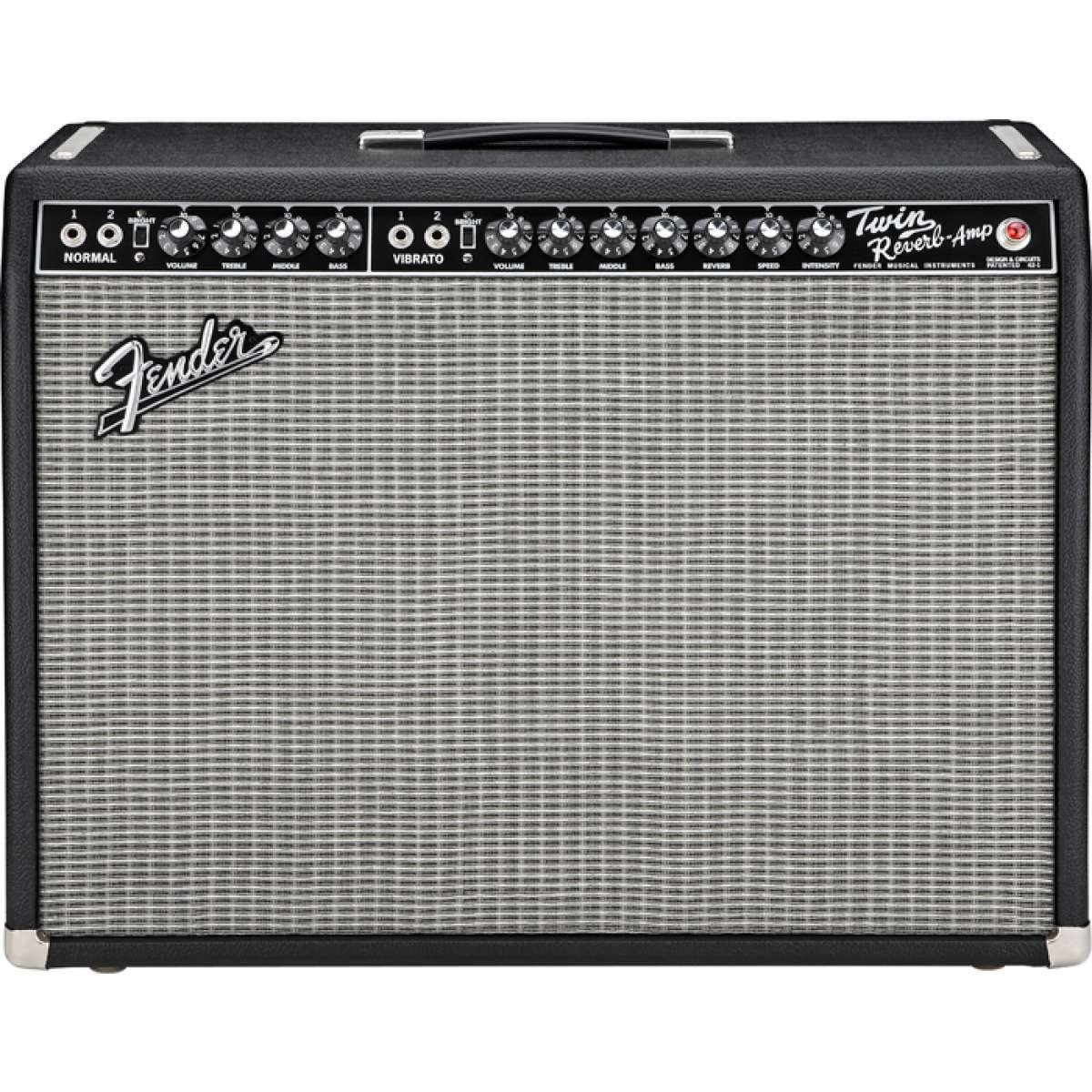 The Fender '65 Twin Reverb Amp is an authentic all-tube reproduction of the original classic! It has earned a reputation of being one of the cleanest tube amps ever, but it delivers a taste of the trademark Fender crunch when cranked up high. Delivers 85W through two Jensen 12" speakers. It has two channels, tube vibrato, tube spring reverb, tilt-back legs and Blackface cosmetics. Includes two-button footswitch to control reverb and vibrato effects. Order the optional Fender amp cover to protect your investment (see accessory box on this page).