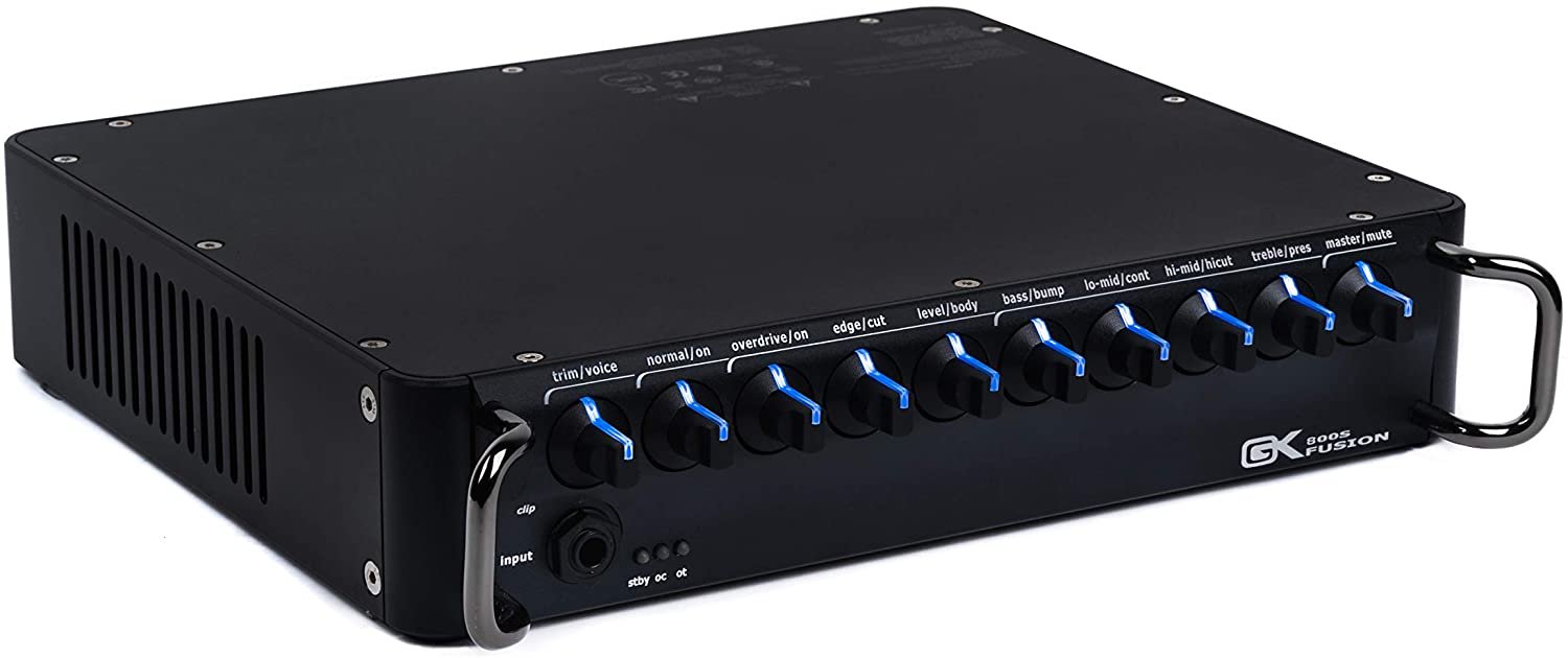 The Gallien-Kreuger Fusion 800S is an 800-watt compact, ultra-light bass amp head with a Class D power amp and an all-tube preamp with tube-powered overdrive. Vintage-voiced with modern punch and clarity, the Fusion 800S, can roll with any genre, churning out crisp and articulate clean tones, big-bottom low end, and gritty distortion that'll knock the house down. With its small form factor, ultra-light construction, and robust interconnection system, it's built for the touring bassist. Additionally, a fully stacked feature set, including illuminated knobs, effects loop, and balanced DI.