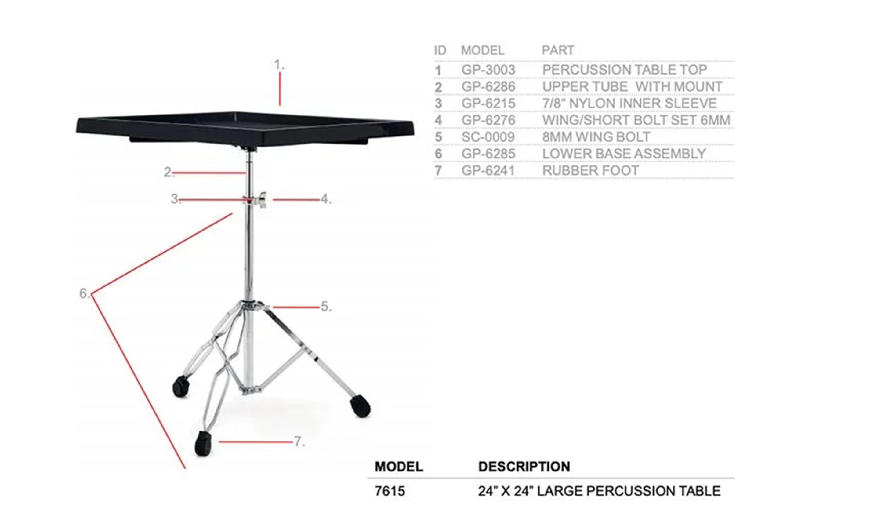 Spesifikasi Gibraltar 7615 Large Percussion Table