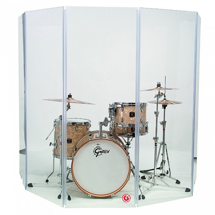 1. Place this 5-piece Acrylic Drum Shield in front of your kit to isolate the sound of your drums during a recording session