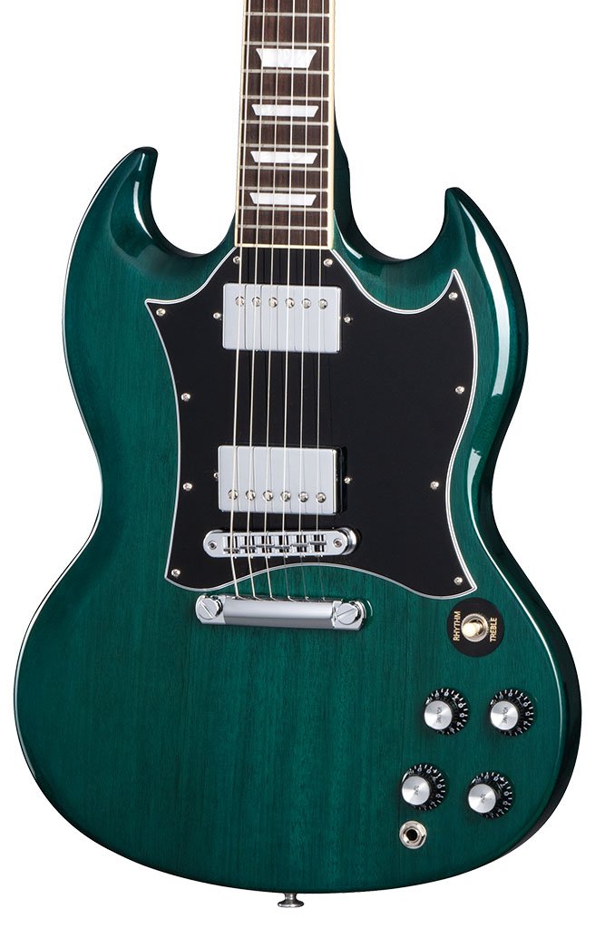 The Gibson SG Standard electric guitar, with its infamous "devil horns," debuted in 1961 as the first double-cut offering from the renowned purveyors of the Les Paul. Then headed by Ted McCarty, Gibson responded to the growing popularity of double-cut instruments by introducing the Solid Guitar (SG). A truly versatile classic, the present-day SG Standard embodies the looks and features associated with highly sought-after late ’60s models, including a rounded neck profile, rosewood fingerboard and solid mahogany body. Gibson “Modern Classic” 490 humbuckers lace the SG with iconic P.A.F. thickness, singing sustain and the power to drive. The Gibson SG Standard honors a legacy of profound innovation—a future-proof double cut recalling the guitar’s everlasting prime.