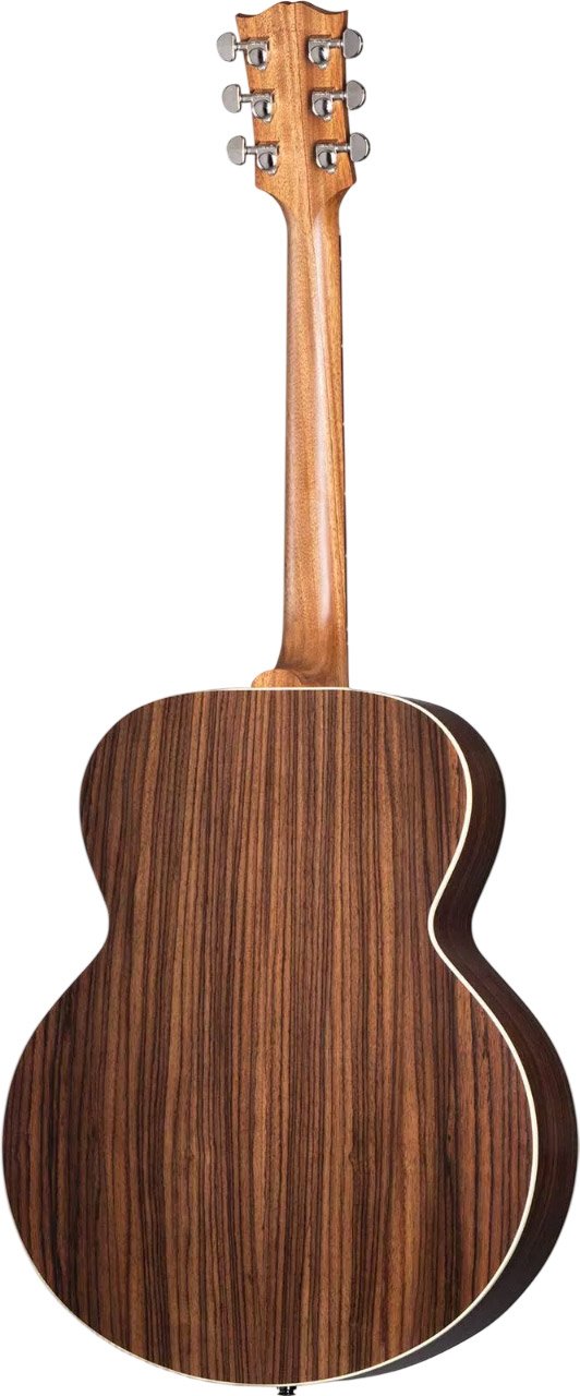 While Gibson’s SJ-200 has made a name for itself as one of the world’s premier maple-bodied guitars, the truth is that the SJ-200 began life with rich rosewood back and sides. In a way, the Gibson Acoustic SJ-200 Studio is a true throwback to the SJ-200’s late 1930s roots, boasting a beautiful set of rosewood back and sides to pair with its Sitka spruce top. What differentiates a rosewood-bodied SJ-200 from its maple- and walnut-bodied counterparts? Rosewood delivers a deeper bass response and superior overtones than many other tonewoods, but it also features a slightly less forward midrange. Affectionately referred to as the “king of the flat-tops,” the SJ-200 is the biggest, loudest, and most powerful 6-string in the Gibson Acoustic arsenal. Few guitars can match the sheer sonic potential of an SJ-200 strummed with full intensity, but what separates the sound of a Super Jumbo from a dreadnought or other large-bodied 6-string? In a word, balance.