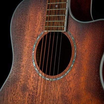 Developed in accordance with recent acoustic guitar market trends, this model features not only mahogany back and sides but mahogany top as well. Although darker sounding than spruce, mahogany produces a warmer tone with a full rich mid-range.