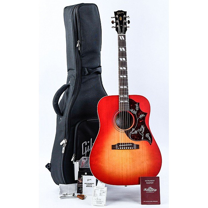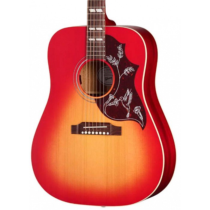 The Gibson Acoustic Hummingbird Special represents a more accessible entry point into the world of Gibson’s square-shouldered stunner, built right alongside Gibson’s top-of-the-line creations in Bozeman, Montana. This beautiful ’bird begins with the same tonewood foundation as the original Hummingbird, pairing a solid Sitka spruce top with scalloped X-bracing and mahogany back and sides. The body depth has been slightly reduced, leading to a more balanced and mix-friendly twist on the Hummingbird’s dry, crisp, strum-friendly song. A utile neck in Gibson’s Round profile affords a comfortable feel while navigating the 12-inch-radius rosewood fingerboard, which sports eye-catching pearloid parallelogram inlays. What’s more, the Hummingbird Special matches the stage-proven performance of its standard-series sibling with LR Baggs electronics and Grover Rotomatic tuning machines. High-end specs further bolster this guitar’s feel and function, including a rosewood belly bridge and a nut and saddle crafted from self-lubricating TUSQ. Sealed with a slick satin nitrocellulose lacquer finish, the Hummingbird Special soars with the sound and style of a true Gibson classic.