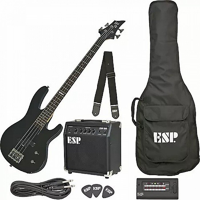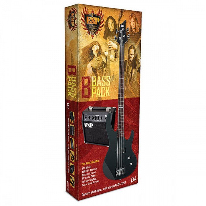 Designed for beginning players or musicians on tight budgets, the B-10 Bass Pack includes everything a player needs to make music, including a bass, an amplifier, and comprehensive set of accessories. The B-10 Bass Pack includes the LTD B-10 bass, a budget-oriented version of ESP's well-known basses made popular by top artists. The bass guitar pack also includes the ESP-15B, a 15W amp perfect for practice and lessons, as well as a 10' 1/4" cable, an electronic tuner, a softshell gig bag, a guitar strap, and picks.