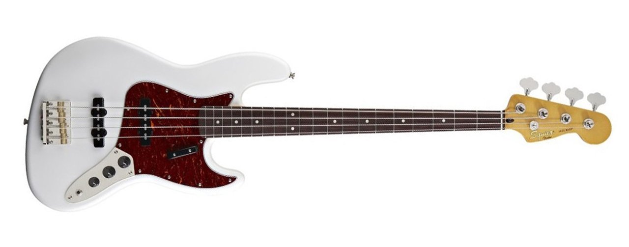 The look is Fender all the way - Inca Silver white over basswood with a traditional tortoiseshell pickguard with thumb rest. Features include a HiMass bridge with brass barrel saddles, rosewood 20-fret vintage tint gloss maple neck with the modern playability of a 9.5" radius, and vintage-style frets. Tonal versatility and an up front sound - quick and punchy with enough clarity and harmonics to slap and pop.