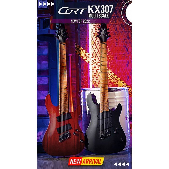 Introduced in 2018, the KX Series multi-scale guitars have made headlines as being the most versatile and solid workhorse guitars for extreme guitarists. The KX307 Multi Scale features the same quality and features of multi-scale, multi- string guitars that Cort is known for in a more approachable package including 25.5” - 27” multi-scale frets with neutral fret in the 8th position, all-mahogany body with roasted maple neck and fretboard, and specially designed PowerBar pickups that churns out explosive high output evenly across all seven strings.