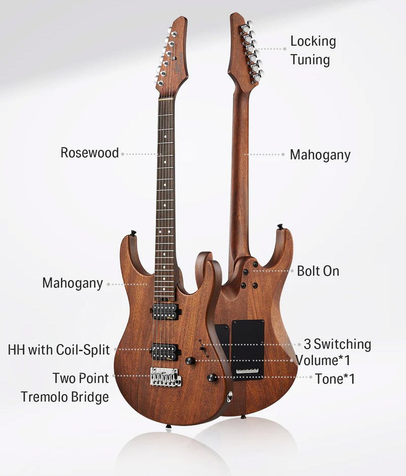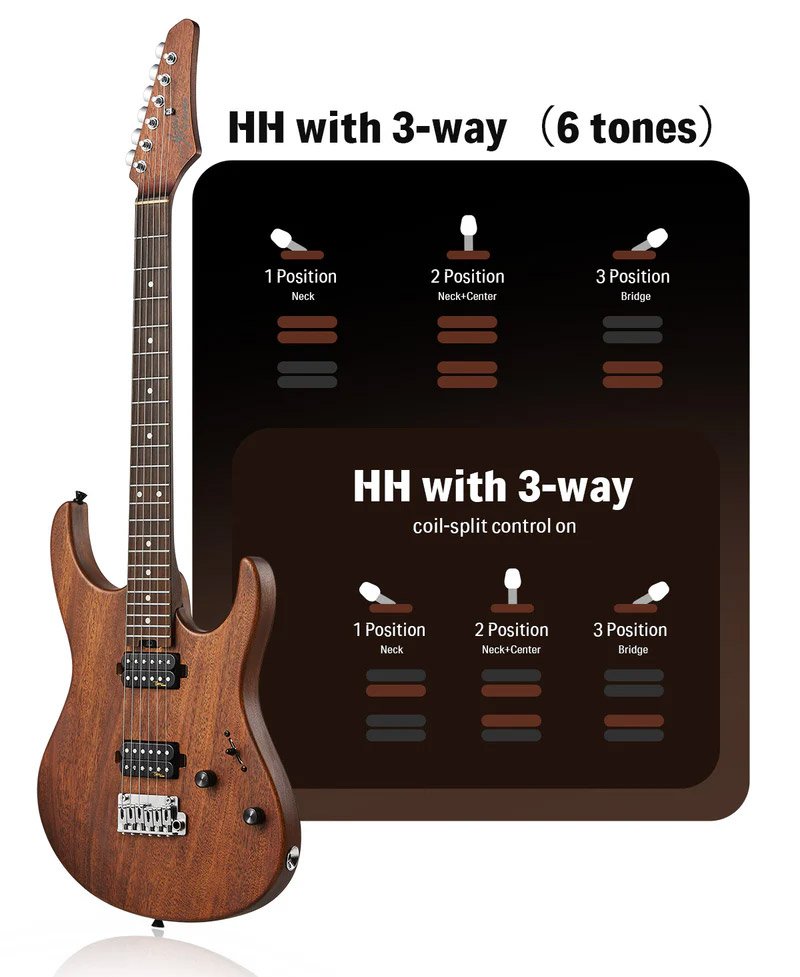 Spesifikasi Donner DST 700 with HH Pickup Electric Guitar, Natural