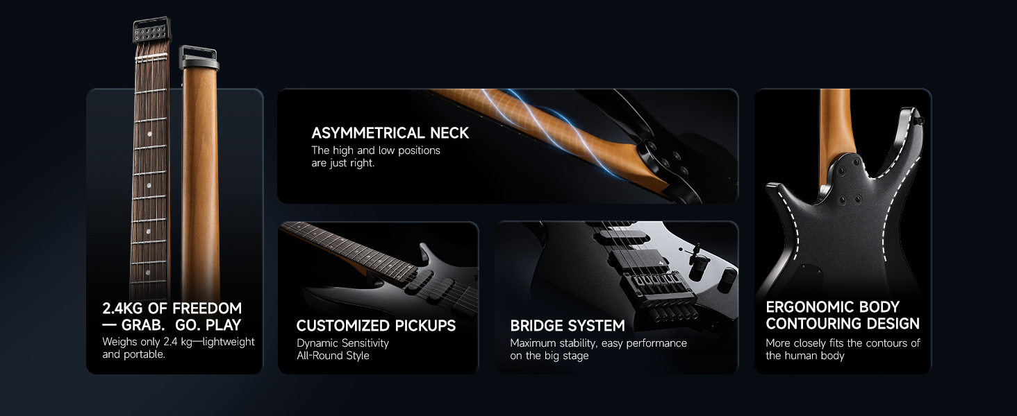 2. Compact and lightweight without a traditional headstock, the NHL-500 is easy to carry and perfect for travel, outdoor jams, or quick commutes to rehearsals.