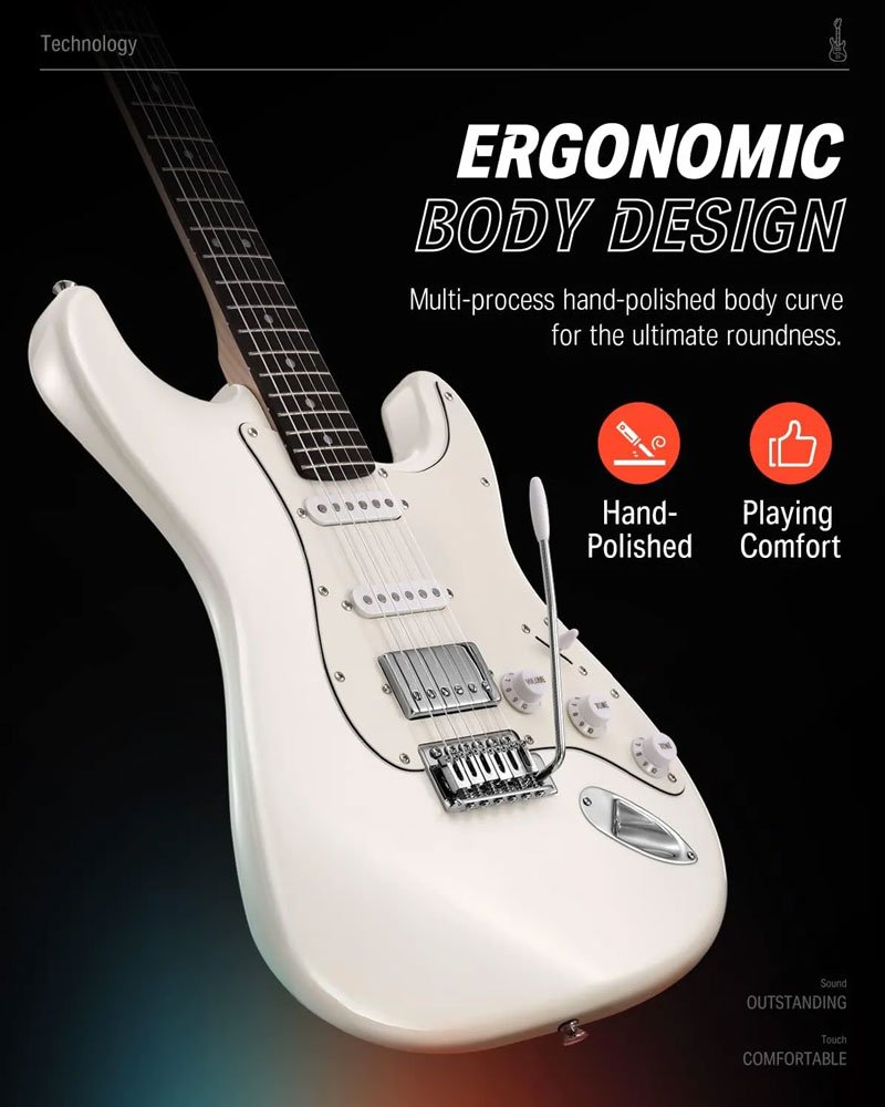 • All in One Bundle: Comes with an Amplifier, Bag, Capo, Strap, String, Tuner, Allen Wrench, Guitar Rocker, Cable, and Pick, DST-152 electric guitar kit is equipped with everything you need. Bring it home and enjoy!