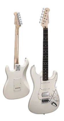 Spesifikasi Donner DST 152W White Electric Guitar Kit HSS Pickup Coil with Amplifier, Bag, Accessories