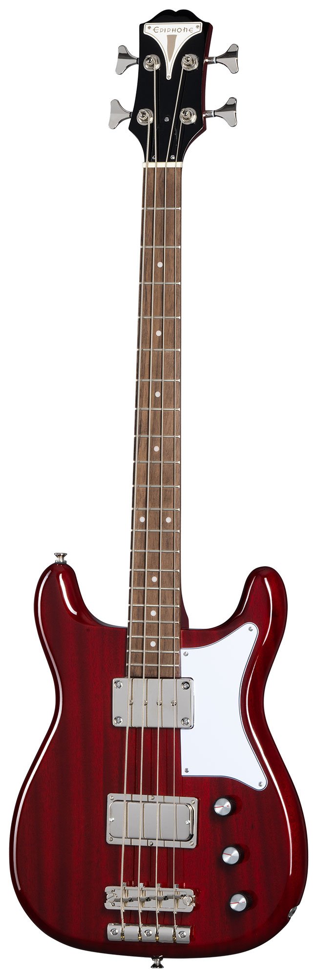 The Epiphone Newport Bass is an all-original design that debuted in 1961. The modern Newport Bass pays tribute to that rare vintage model while offering refinements to meet the needs of today’s bassists. The 30.5” scale length and comfortable Medium C profile make it suitable for players with a wide range of hand sizes, while the symmetrical double-cutaway body ensures excellent access to every fret. The Bass Sidewinder neck pickup provides rich, deep tones, while the TB PRO in the bridge position delivers brighter timbres. The two pickups are paired with master volume and tone controls and a blend knob so you can get precisely the tonal balance you desire. Available with a classic Cherry finish and three custom colors - California Coral, Sunset Yellow, and Pacific Blue.