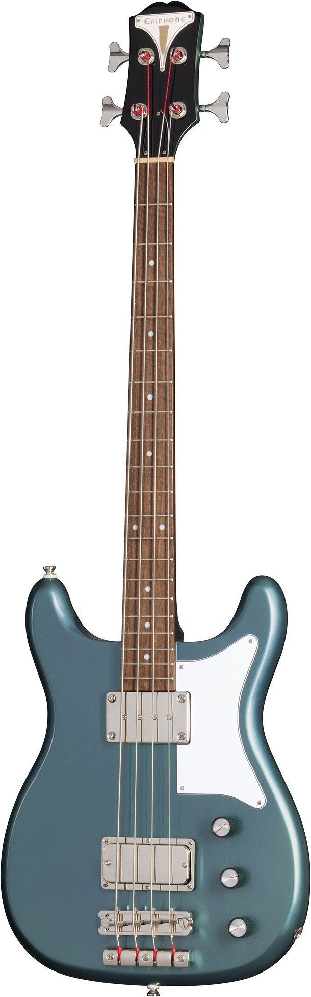 The Epiphone Newport Bass is an all-original design that debuted in 1961. This modern-day interpretation of the Newport Bass pays tribute to that rare vintage model, while offering refinements to meet the needs of today's bassists. The 30.5" scale length and comfortable medium "C" neck profile make it suitable for players with a wide range of hand sizes, while the symmetrical double-cutaway body ensures excellent access to every fret. The Bass Sidewinder neck pickup provides rich, deep tones, while the TB PRO in the bridge position delivers brighter timbres. The two pickups are paired with master volume and tone controls, as well as a blend knob so that you can precisely get the tonal balance you desire. Trust us, this bass is packed full of mojo!